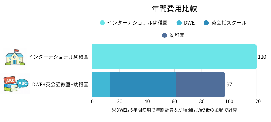 「DWE+英会話スクール+普通の幼稚園」という選択肢のほうが、わが家には現実的でした。